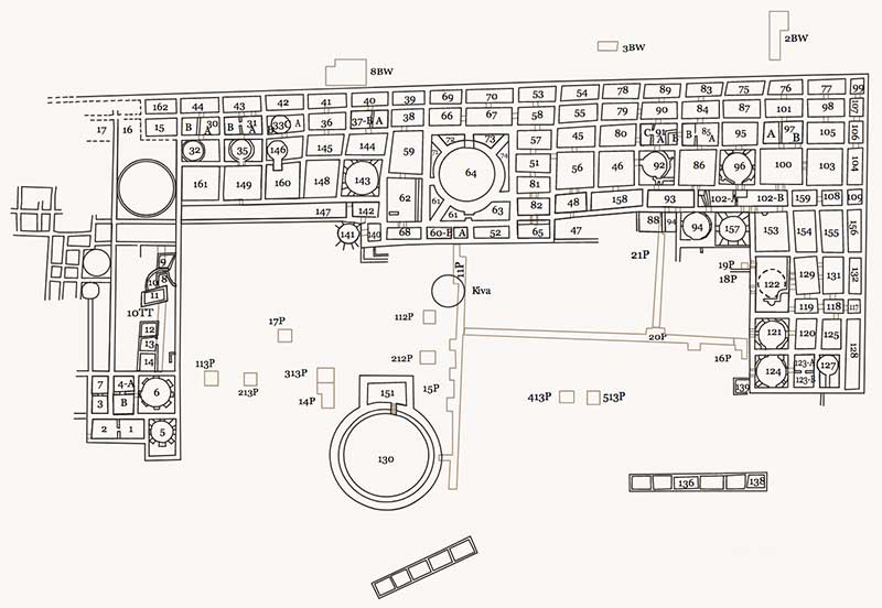 Room 1W comprises two subunits, 1W and 2W. The larger Chacoan era room was initially defined as 1W. Once the San Juan subdividing wall was encountered, excavators retained the name 1W for the east half and designated the west half as 2W. 1W is located in the southwest sector of Salmon Pueblo and measures 3.6 x 3.3 m. Nineteen strata were designated. Four separate floor units were identified, along with fill sequences, structured trash deposits, and roof-fall strata. Two, possibly three, Chacoan floors were present in 1W. Six features were discovered in Room 1W. Because Rooms 1W, 2W, and 5W do not follow the typical Chacoan room suite pattern and were built at the end of the west wing, they appear to represent an add-on to the original design. A later, partial San Juan period burial was placed into the Chacoan deposits of this room. No tree-ring dates comes from Room 1W but its masonry style and ceramics indicate construction during the Chacoan interval.